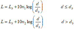 雙射線模式給出的路徑損耗被寫成為收發之間的距離d的函數,并且可以用兩個不同斜率n1 和n2 的直線段近似。兩線段之間的突變點也稱為拐點出現在離發射端的距離為: