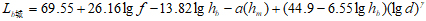 Lb城 為城市市區的基本傳播損耗中值;